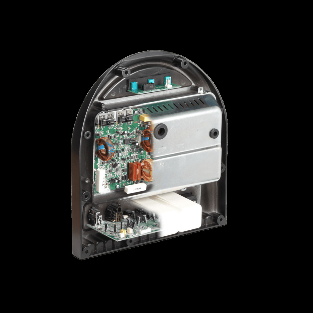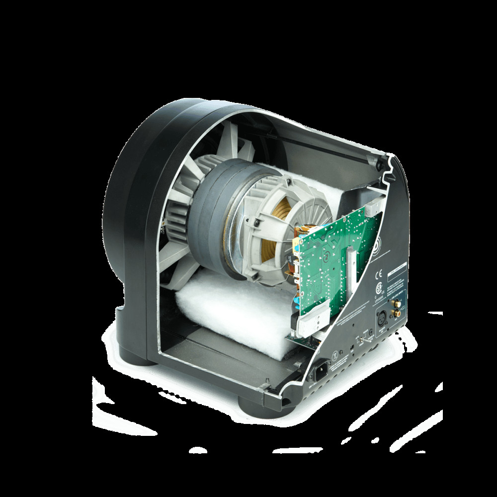 Single high-excursion driver, sealed enclosure, patented built-in Ultra-Class-D™ power amplifier, USB port