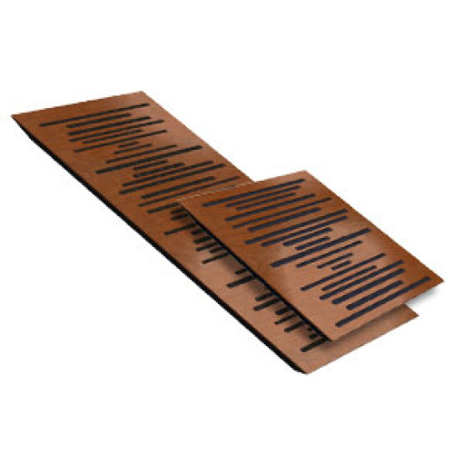 Wave Wood is made from a combination of acoustic foam and wood. Its instantly recognizable design results from unique research based on the acoustic properties of the wood and foam combined with non-linear sequential cavities that enable Wave Wood to act as both an absorber and diffuser. It is particularly effective in treating medium and high frequencies as well as solving issues such as flutter echoes. Wave Wood can also be highly effective in controlling low frequencies when fitted in the corners of a room and used as a bass trap.